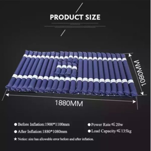 – Trải đệm ra thật phẳng, không còn nếp gấp nào. Gắn nệm với máy bơm thông qua đoạn dây nối. Bật nguồn máy bơm, lúc này máy sẽ từ từ bơm hơi vào trong đệm. Khoảng 15 – 30 phút đệm sẽ đầy hơi.