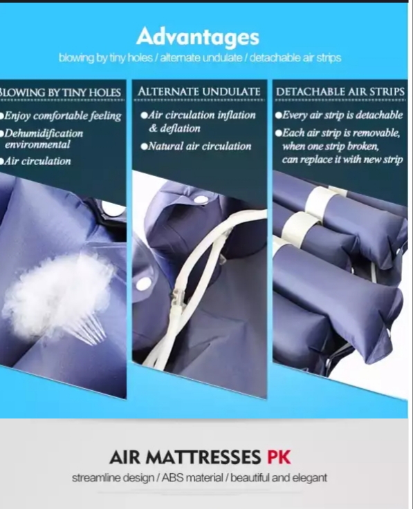 Đệm khí chuyên dụng phù hợp cho các bệnh nhân nằm liệt giường, phòng chống hiệu quả nhất triệu chứng bedsore (chứng thối loét vì nằm liệt giường). Nệm chống loét cao cấp giúp người tai biến, người già yếu giảm đau nhức, thoáng mát, dễ chịu trong suốt thời gian điều trị và dưỡng bệnh