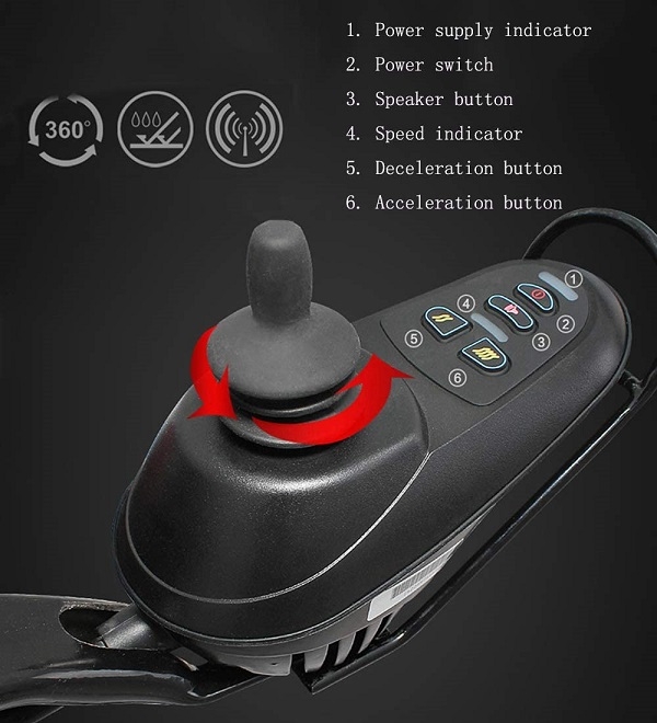 Cần điều khiển thông minh đa năng chống thấm nước 360 độ, dễ dàng điều khiển, có đèn báo nguồn, tắt / mở nguồn, còi, báo tốc độ, nút tăng giảm tốc độ.